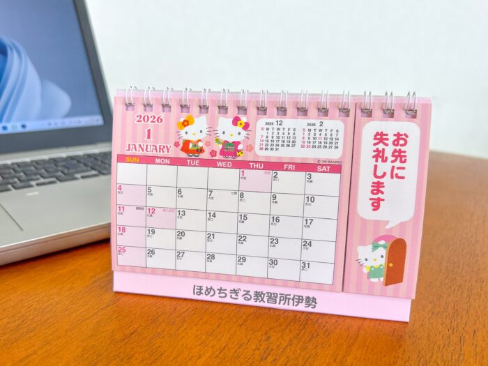 【合宿入所の皆さまへ】ハローキティ オリジナルカレンダープレゼント! 2025.10.16 入所特典として、期間限定で「ハローキティデザインの教習所オリジナルカレンダー」をプレゼントいたします!ここでしか手に入らないキュートなキティちゃんのカレンダーで、2026年を楽しく彩りませんか?■プレゼント開始日2025年10月18日(土)より■対象者合宿に入所される方全員※なくなり次第、カレンダーのお渡しは終了となります。※カレンダーが終了次第、「ほめるんじゃーフェイスタオル」をお渡しいたします。皆さまのご入所を心よりお待ちしております。
